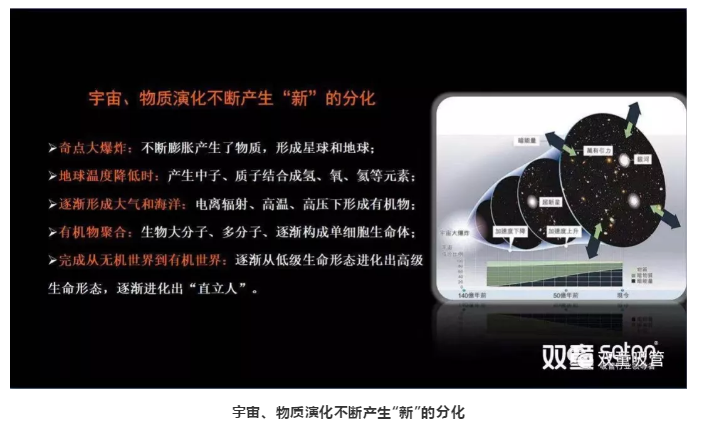 首先是物質(zhì)的創(chuàng)新。宇宙起源于奇點(diǎn)大爆炸,之后不斷膨脹產(chǎn)生了物質(zhì),隨著不斷分化,產(chǎn)生了各種不同的物質(zhì)。