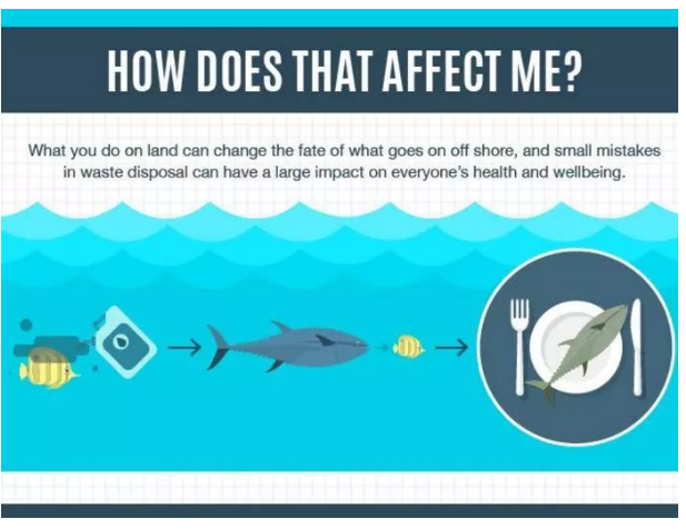 據(jù)調(diào)查,海鮮、牛肉、海鹽、自來水等都有被塑料污染的情況。 無法被分解的塑料進(jìn)入海洋生物體內(nèi),沉積到血液、脂肪、肌肉里,最后又被人類吃下了肚。