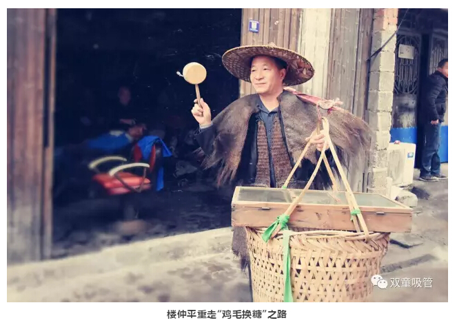 在我很小的時(shí)候,我爸爸就已經(jīng)出去“雞毛換糖”了,后來(lái),兩個(gè)哥哥長(zhǎng)大了也陸續(xù)跟著我的爸爸去“雞毛換糖”。