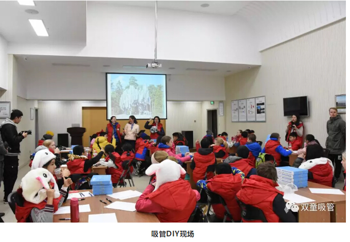 來到可降解吸管展示區(qū)時,帶隊老師和孩子們都停住了腳步!孩子們聚在一起思考“會消失的吸管”!吸管妞主要和大家介紹了45天就可以化解成水和二氧化碳的“雙童”生物質(zhì)可降解吸管,芬蘭的帶隊老師們也表示如此環(huán)保的產(chǎn)品一定是未來的趨勢所在!