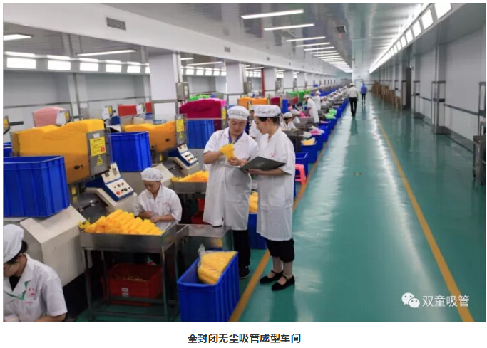 進入車間內(nèi)部,一列列整齊的機器、一箱箱五顏六色的吸管、一條條清晰分明的分界線,車間內(nèi)全部安裝了恒溫空調(diào),所有員工皆穿著潔白的工作服進行生產(chǎn)工作。