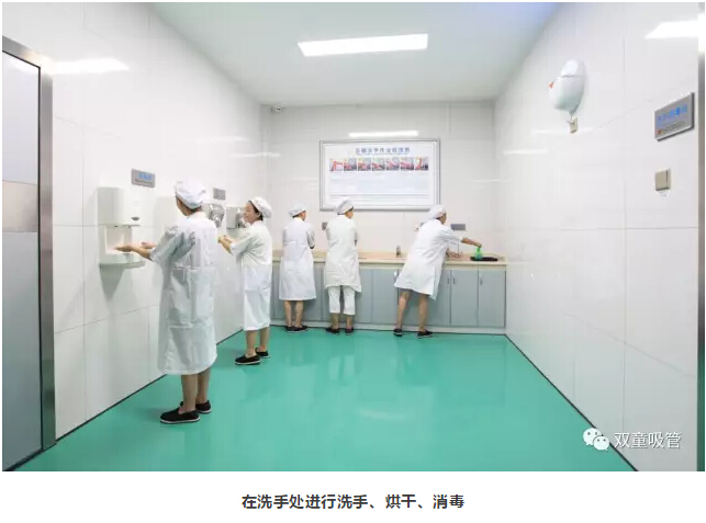 除了生產(chǎn)現(xiàn)場的工作環(huán)境之外,進入車間前的一系列衛(wèi)生防護標準也至關(guān)重要!在“雙童”,每位員工在進入車間前,都要按照規(guī)范進行消毒防護措施,過五道門六道關(guān)卡才能進入車間工作: