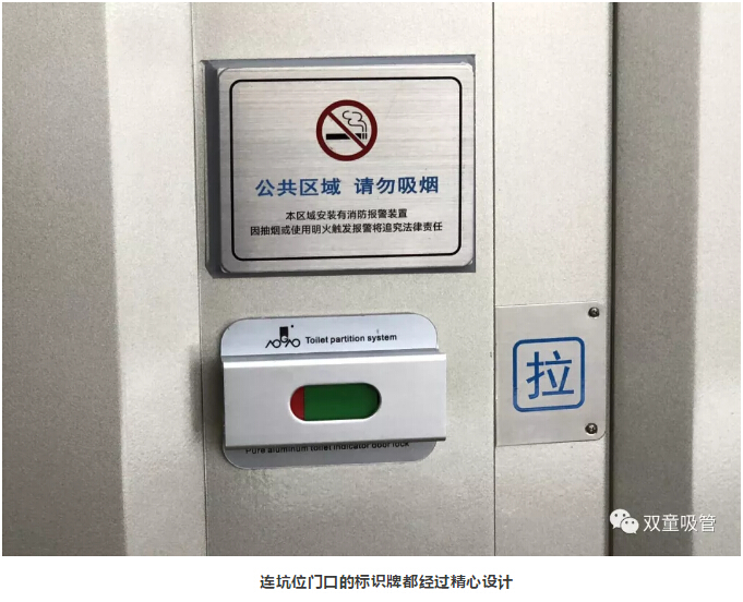 除此之外,“雙童”衛(wèi)生間還有許多文化引導(dǎo)的標(biāo)示牌。如:每扇門上都會有“公共區(qū)域,嚴(yán)禁吸煙”的標(biāo)識,每個蹲位后面都有“便后請沖水、素養(yǎng)高低往往體現(xiàn)在關(guān)上門自己獨處之時”等溫馨提示,從而引導(dǎo)員工提高自身素質(zhì),形成文化宣導(dǎo)氛圍!