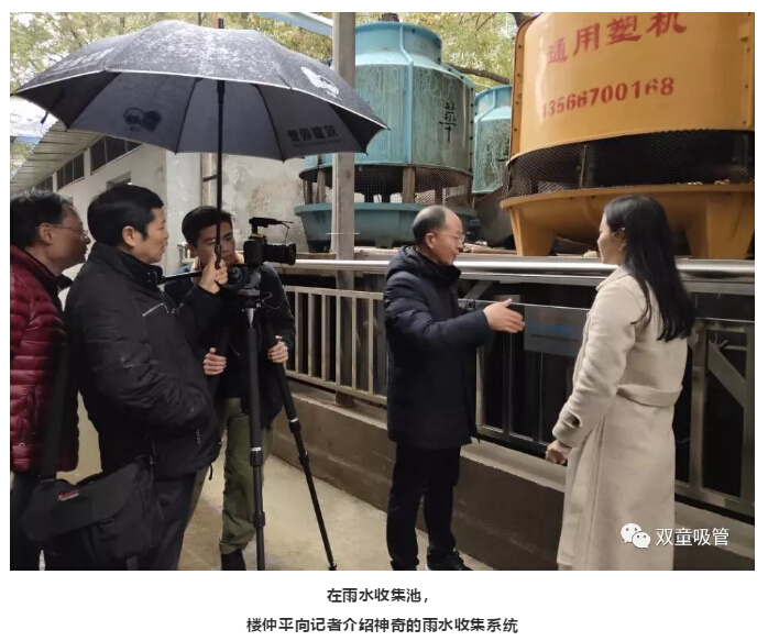 前天下午,金華電視臺(tái)和金華之聲的記者專門為了“雙童”的雨水收集系統(tǒng)而來,并跟著樓總詳細(xì)了解了雨水到底是如何“變”成錢的!