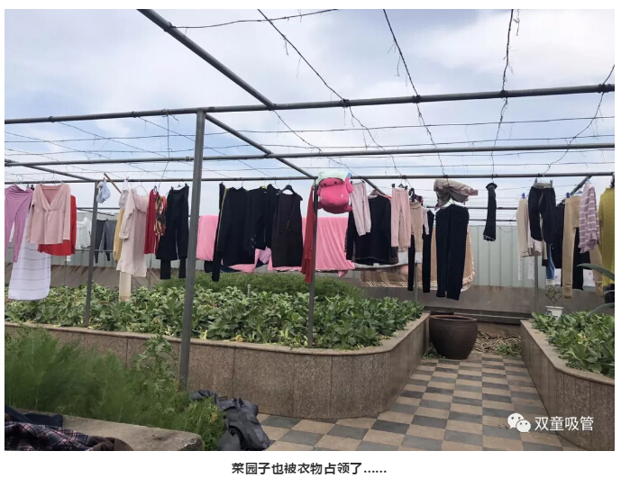 瞧!“雙童”人捂了一個(gè)月的衣物、被子曬滿(mǎn)了晾衣平臺(tái)!就連平時(shí)空著的屋頂菜園都被占領(lǐng)的滿(mǎn)滿(mǎn)當(dāng)當(dāng)?shù)?,和綠油油的蔬菜交相輝映……