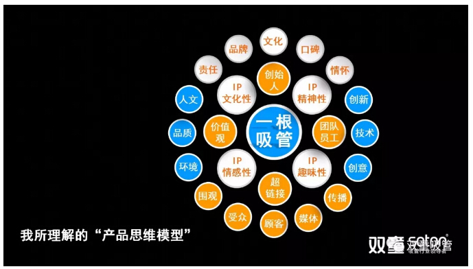 在這個(gè)模型中,吸管本身是一個(gè)產(chǎn)品,在產(chǎn)品本身內(nèi)核不發(fā)生改變的情況下,產(chǎn)品之外的“品質(zhì)”、“信譽(yù)”、“品牌”、“文化”等屬性不斷地外延,并通過“創(chuàng)始人”、“團(tuán)隊(duì)員工”、“價(jià)值觀”等又形成了產(chǎn)品的種種不同屬性。