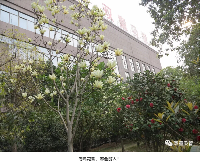 春天的“雙童”,鳥(niǎo)鳴花香,春色醉人! 桃花、 玉蘭花、茶花……真是“百般紅紫斗芳菲”呀!