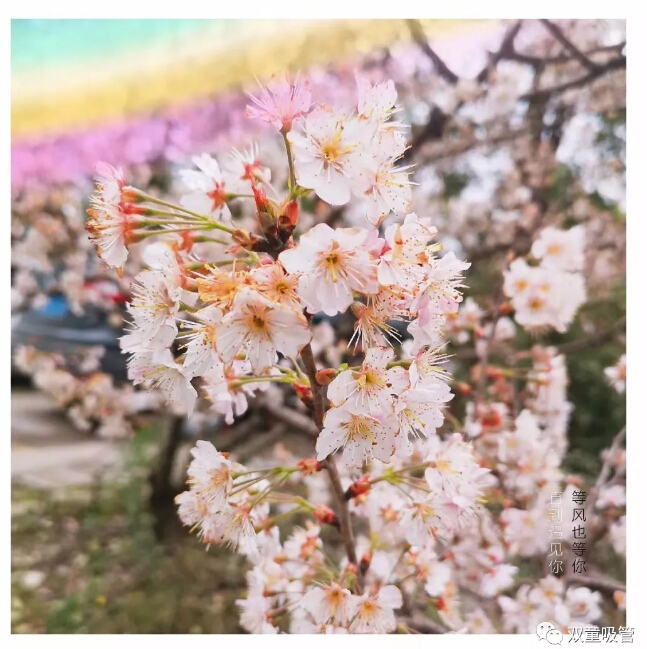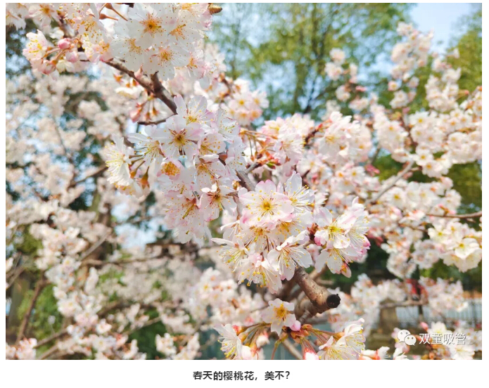 瞧!樹(shù)枝上嬌俏可愛(ài)的櫻桃花層層疊疊,宛如一片粉色花海。