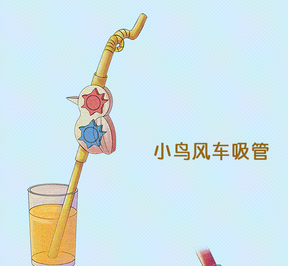 除了常規(guī)的風(fēng)車(chē)吸管之外,我們還有小鳥(niǎo)造型的風(fēng)車(chē)吸管哦,在喝水的同時(shí),你還能看到小鳥(niǎo)里的齒輪在水花里不停飛轉(zhuǎn),帶你體會(huì)喝水的樂(lè)趣!