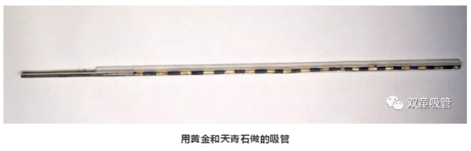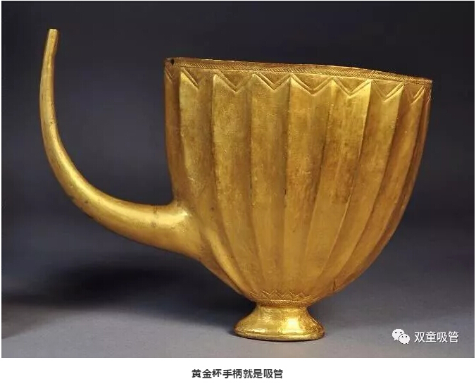 在現(xiàn)在的伊拉克南部,歷史學(xué)家們發(fā)現(xiàn)了亞述王朝初期的烏爾城王后普阿比的墓室中,她的黃金杯手柄就是吸管,她可以通過手柄來飲用杯子里的啤酒。同時,歷史學(xué)家們還在墓室中發(fā)現(xiàn)了一根用黃金和天青石做的吸管。