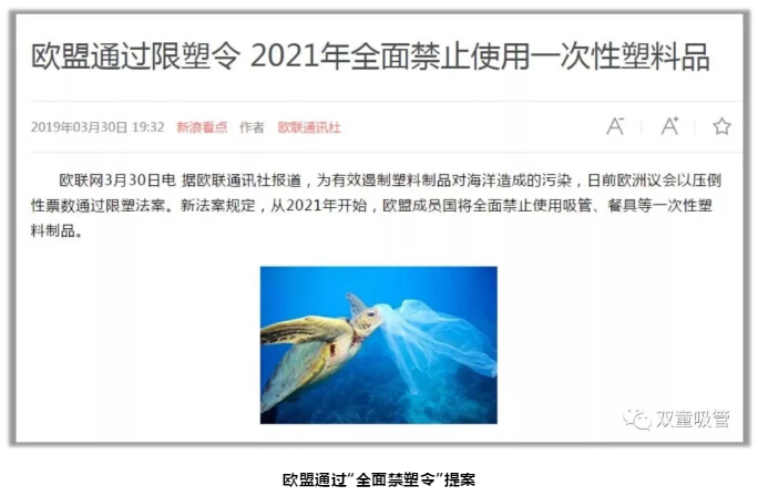由于塑料制品對環(huán)境和動物造成的傷害,去年,全球掀起了限塑熱潮!世界各國也都發(fā)起了“最后一根塑料吸管”運(yùn)動,越來越多的機(jī)構(gòu)都開始拒用塑料吸管,紙質(zhì)吸管,可降解材料吸管的研發(fā)、創(chuàng)新成為吸管行業(yè)的新風(fēng)尚。
