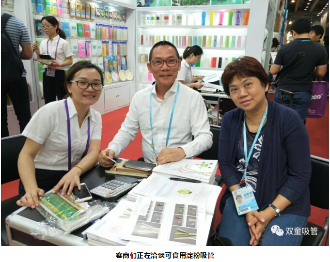 “雙童”可食用淀粉吸管首次上市就在廣交會(huì)上引爆啦,許多客商都慕名而來(lái)了解這根“神奇的吸管”!