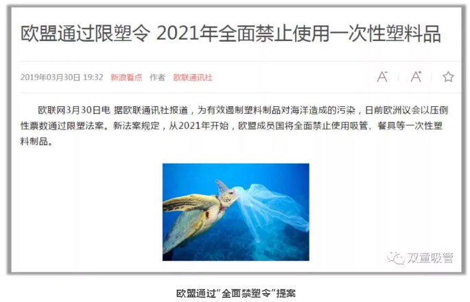 由于塑料制品對環(huán)境和動物造成的傷害,全球掀起了限塑熱潮!世界各國也都發(fā)起了“最后一根塑料吸管”運動,越來越多的機構(gòu)都開始拒用塑料吸管……