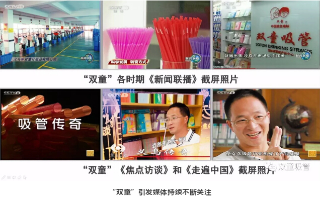 通過企業(yè)創(chuàng)造差異化亮點(diǎn),“雙童”獲得了砸廣告都不能獲得的關(guān)注度和流量,成為了吸管行業(yè)的“金牌子”,也讓大家改變了對(duì)吸管這類產(chǎn)品“低、小、散、弱”的傳統(tǒng)定義。通過各大媒體對(duì)“雙童”的報(bào)道和宣傳,“雙童”品牌不花一分錢,就傳遍了大江南北。