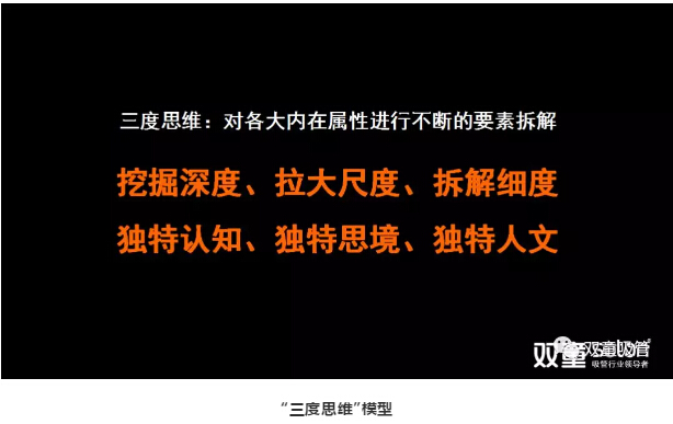 產(chǎn)品要轉(zhuǎn)化成商品就需要讓產(chǎn)品擁有精神屬性、文化屬性等,因此,“雙童”通過“三度思維”對(duì)各大內(nèi)在屬性進(jìn)行不斷的要素拆解。