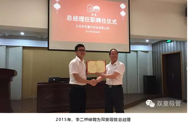 16歲初中畢業(yè)就進(jìn)“雙童”,在“雙童”娶妻生子,一干就是18年。從普工做起,一步一個(gè)腳印,而立之年升任總經(jīng)理。在“雙童”這個(gè)大家庭里,李二橋童話般的成長(zhǎng)經(jīng)歷,很好地詮釋了這家企業(yè)價(jià)值觀:尊重勞動(dòng)、尊重知識(shí)、尊重人才。
