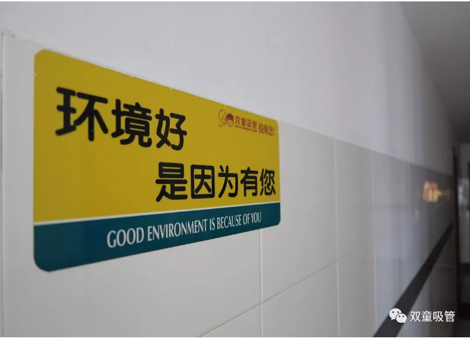 走進(jìn)“雙童”廠區(qū),第一印象是環(huán)境很整潔、衛(wèi)生。在員工宿舍區(qū),裝修了十多年的白墻有些泛黃,卻找不出一個(gè)手印或鞋印。這是為什么?樓道口的一塊標(biāo)語(yǔ)牌似乎道出了答案:環(huán)境好,是因?yàn)橛心?/span>