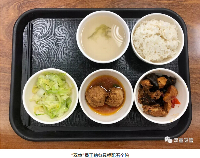 剛來工作的她不明白:一般企業(yè)的食堂大多使用不銹鋼盤,最多再配一個不銹鋼碗,“雙童”要用五個碗;多數(shù)企業(yè)用的是簡易或折疊餐桌椅,“雙童”選用了厚重的實木款;不少企業(yè)的餐后垃圾只用一兩個垃圾桶回收,“雙童”要用五六個,有這個必要嗎?