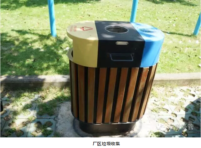 廠區(qū)公共區(qū)域共安置了四套垃圾筒,每個員工寢室和辦公區(qū)域配置小型垃圾筒。這是廠區(qū)生活垃圾分類的第一步。