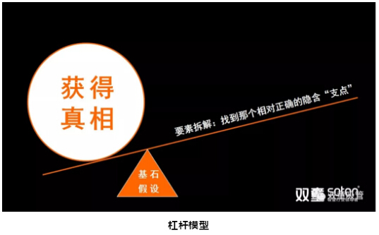 它背后的邏輯其實(shí)很簡(jiǎn)單,即通過不斷地要素拆解,找到相對(duì)正確的“基石假設(shè)”,把它作為一個(gè)支點(diǎn),從而撬動(dòng)了思維。