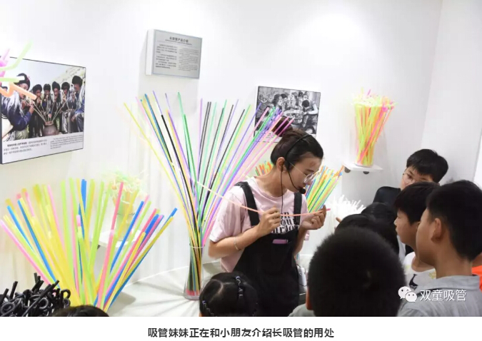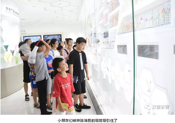 進(jìn)入吸管博物館后,吸管妹妹給小朋友們介紹了可彎曲吸管的制作過程,長(zhǎng)吸管的用處,這也引起了小朋友們滿滿的好奇心,紛紛緊跟吸管妹妹的身后,認(rèn)真的聆聽介紹。