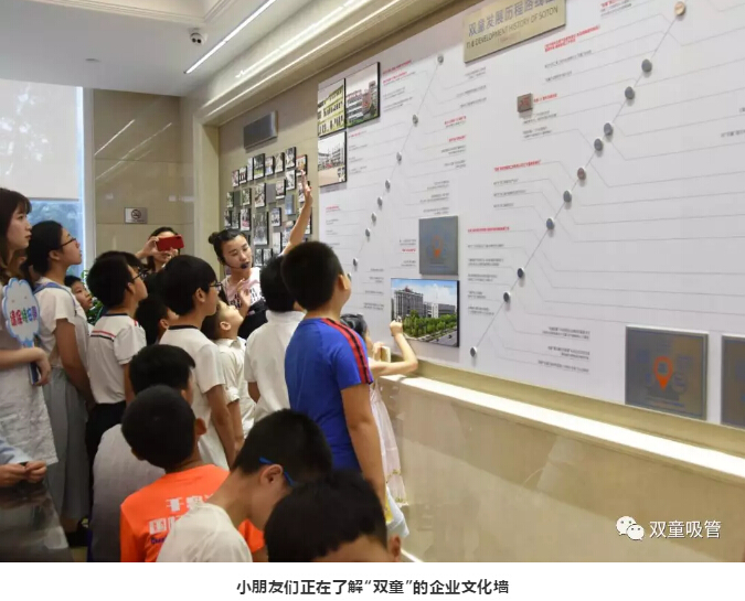 參觀完博物館后,大家接著參觀了“雙童”員工餐廳和企業(yè)文化墻。小朋友們一如既往地緊跟吸管妹妹身后,深怕自己錯(cuò)過什么“秘密”。