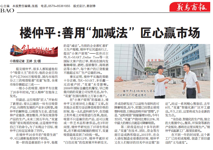 這不,《義烏商報》發(fā)出了《樓仲平:善于“加減法”匠心贏市場》的專題報道,一起來看看吧!