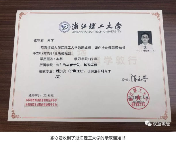 “雙童”寶貝張守君考上了省重點(diǎn)大學(xué)