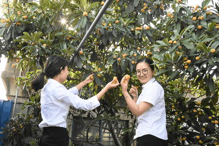 隨后,黃澄澄的枇杷接檔啦!金燦燦一片掛在枝頭格外好看!吃起來也是香甜可口,還能潤肺生津,這樣的水果誰不愛呢!
