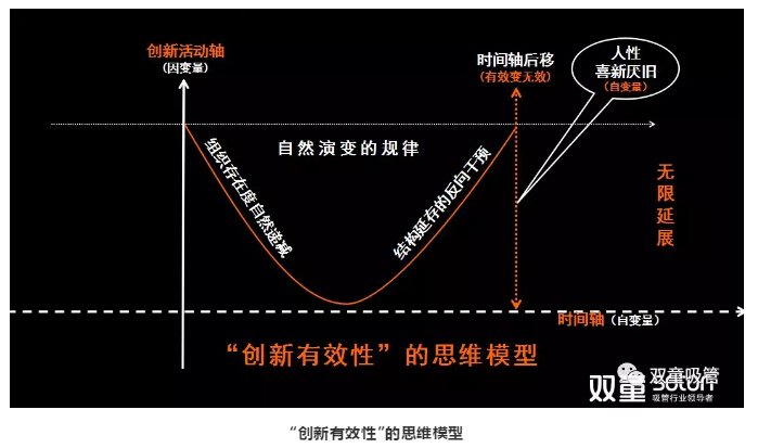通過(guò)宇宙演化、生物進(jìn)化等自然規(guī)律的演繹,我們能夠認(rèn)知到創(chuàng)新是“喜新厭舊”的應(yīng)變反饋。這就說(shuō)明了:創(chuàng)新有“時(shí)間軸”,隨著“時(shí)間軸”不斷后移,原有的“創(chuàng)新”開(kāi)始失效,最后變成了無(wú)效,創(chuàng)新活動(dòng)也就“無(wú)窮無(wú)盡”!