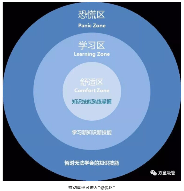 由于社會環(huán)境的復雜性、時代的巨變性和企業(yè)的自然墮變性,當家人樓仲平意識到“雙童” 直面“生死劫”!隨即通過“向死而生”的命題假設,讓團隊認知到雙童離“死亡”只有六個月,以此激發(fā)員工的危機感,從而讓“雙童”管理層再次脫離“舒適區(qū)”,遠離“危險區(qū)”,進入“恐慌區(qū)”!通過對“死”的反悟,激發(fā)組織活力,從而得以延續(xù)獲得“生”的能力。