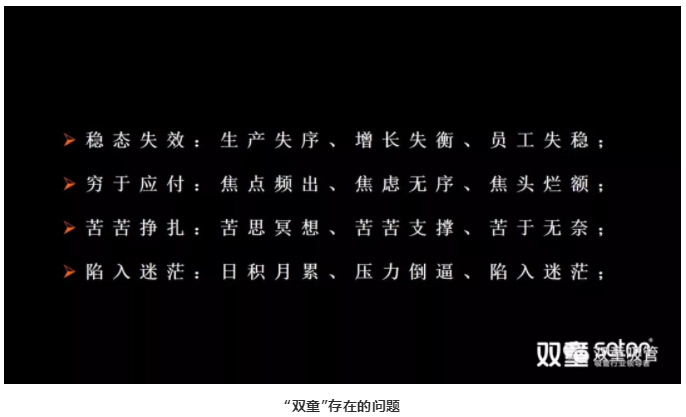 經(jīng)過8月16日晚樓仲平的分享之后,“雙童”在8月17日晚7:00 召開了“雙童”改革方向落地會議??偨?jīng)理李二橋繼續(xù)接棒改革,圍繞《激發(fā)活力、砥礪前行》主題進行深入分享,強力推動管理者脫離“舒適區(qū)”!