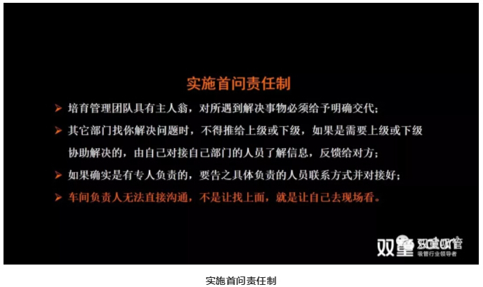 培育管理團隊具有主人翁,對所遇到解決事物必須給予明確交代; 其它部門找你解決問題時,不得推給上級或下級,如果是需要上級或下級協(xié)助解決的,由自己對接自己部門的人員了解信息,反饋給對方; 如果確實是有專人負責的,要告之具體負責的人員聯(lián)系方式并對接好;車間負責人無法直接溝通,不是讓找上面,就是讓自己去現(xiàn)場看。