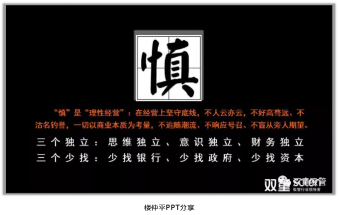 做企業(yè)也是如此,在經(jīng)營上要有自己的獨(dú)立判斷,堅(jiān)守底線,不人云亦云,一切以商業(yè)本質(zhì)為考量,不追隨潮流、不響應(yīng)號(hào)召、不盲從旁人期望?;谝陨希瑯侵倨揭部偨Y(jié)出“三個(gè)獨(dú)立”和“三個(gè)少找”:
