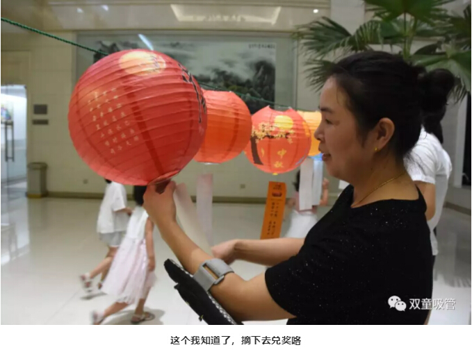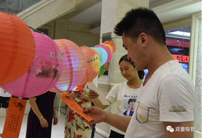大家的聰明才智讓吸管妞佩服!沒過多久,大家就紛紛帶著燈籠下的燈謎,報自己猜的謎底前來兌獎。猜對的可以有一次參與抽獎機(jī)會。瞧!兌獎處也是十分的熱鬧呢!