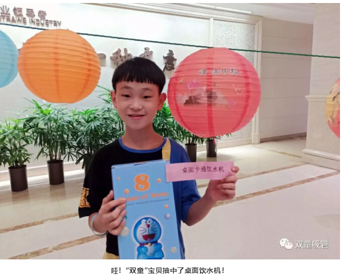 經(jīng)過校對謎底后,大家也紛紛的參與抽獎,有的人抽到了月餅,有的人抽到了桌面飲水機(jī),有的人抽到了.......接下來,吸管妞給大家曬一波“雙童”人捧回大禮的美照呀!