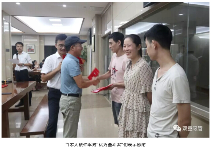 9月9日晚,“雙童”召開了關(guān)于8月21日—8月31日階段性競(jìng)賽獎(jiǎng)勵(lì)表彰大會(huì)!會(huì)上,當(dāng)家人樓仲平再次為所有員工站臺(tái),兌現(xiàn)了讓每位“優(yōu)秀奮斗者”獲得更高獎(jiǎng)金的承諾。同時(shí),樓仲平表示每個(gè)月都將與員工站在一起,并鼓勵(lì)和推動(dòng)所有員工“以奮斗者為本”,與“雙童”共同成長!