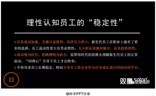 看到這里,很多老板或許認(rèn)為離職率高因?yàn)楝F(xiàn)在的95后員工浮躁、不穩(wěn)定,可事實(shí)真的是這樣嗎?管理者又該如何面對(duì)和管理呢?一起來(lái)看看樓仲平是怎么說(shuō)的吧!