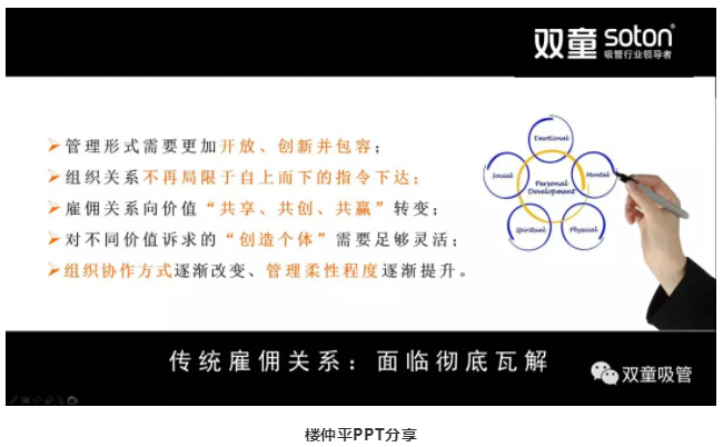 這些年來(lái),“雙童”樓仲平一直十分重視團(tuán)隊(duì)管理,敢于授權(quán),用科學(xué)理性的方式引導(dǎo)員工職業(yè)化轉(zhuǎn)變,推動(dòng)企業(yè)規(guī)范化、制度化、流程化和標(biāo)準(zhǔn)化。