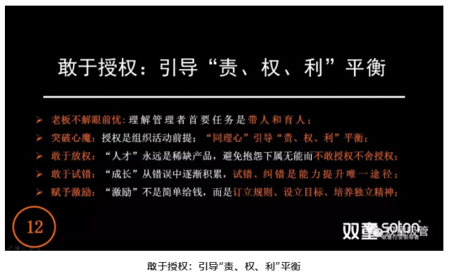 管理不是管控、教條和賦予,而是激發(fā)和釋放每個(gè)人的潛力,通過(guò)這種方式來(lái)幫助員工成長(zhǎng)、激發(fā)其創(chuàng)造,在共同追求中形成一致的價(jià)值和理念認(rèn)同。
