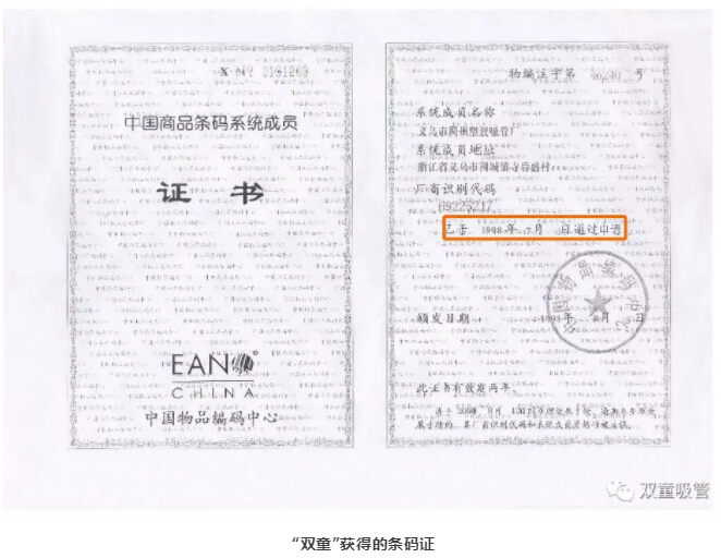 此項標(biāo)準(zhǔn)的制定完成之后,“雙童”獲得了商品條碼證,由此打開了企業(yè)在商超場所的銷售渠道,使“雙童”的產(chǎn)品成功進(jìn)入了上海的超市,并陸續(xù)打開了進(jìn)入流通超市的敲門磚,從而讓“雙童”在二十年前更早的實現(xiàn)了傳統(tǒng)企業(yè)家庭作坊的轉(zhuǎn)型!