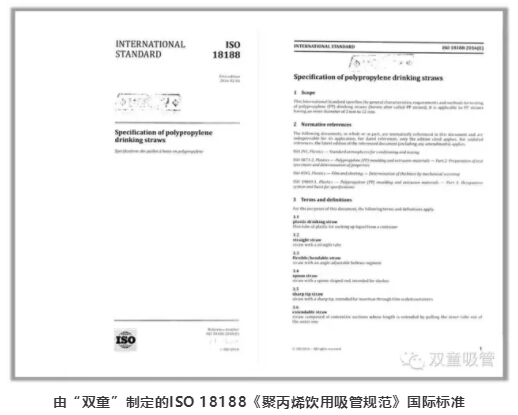 ISO 18188《聚丙烯飲用吸管規(guī)范》國際標(biāo)準(zhǔn)成為了全球吸管行業(yè)組織生產(chǎn)、驗(yàn)收、評判和糾紛解決的全球性判定準(zhǔn)則,這意味著全球吸管行業(yè)的相關(guān)規(guī)則、驗(yàn)收標(biāo)準(zhǔn)、評判依據(jù)均來源于“雙童”的技術(shù)數(shù)據(jù)。“雙童”也成為了浙江省唯一由單一企業(yè)承擔(dān)“行業(yè)標(biāo)準(zhǔn)、國家標(biāo)準(zhǔn)和ISO國際標(biāo)準(zhǔn)”的中小企業(yè)。