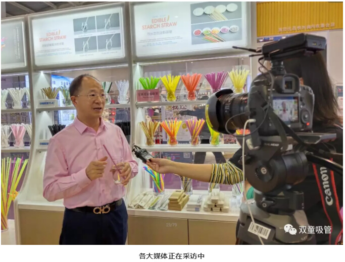 在此次義博會上,“雙童”可食用淀粉吸管不僅引起來往客商關(guān)注,還引來眾多媒體的采訪報道!