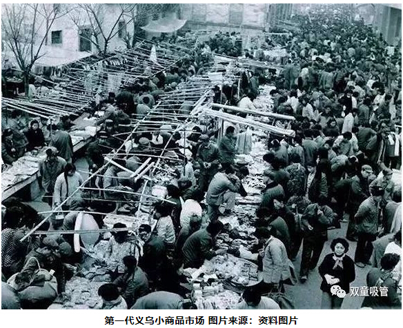 兩年后,樓仲平建議父親去城里“雞毛換糖”,城里人多,能掙的錢也多。到了江西景德鎮(zhèn)之后,他們發(fā)現(xiàn)菜市場門口有人鋪了一塊塑料布,上面放著義烏的小百貨在賣。后來,他和父親也從義烏進(jìn)了一批小百貨,放到菜市場門口賣。直到1982年,義烏提出興商建市的發(fā)展戰(zhàn)略,建成了義烏第一代市場第一代市場——稠城市場正式開業(yè),聚集起了700多個(gè)商戶,每家商戶拿一塊板,一塊塑料布就能開店。