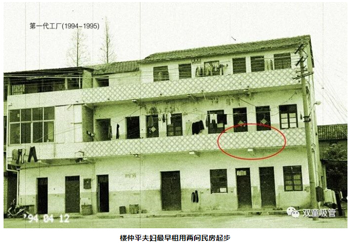 在前前后后經(jīng)歷了擺地?cái)偂⒂歇?jiǎng)銷售、打鐵、當(dāng)“倒?fàn)敗?、養(yǎng)魚等20多個(gè)行當(dāng)后,樓仲平在1991年回到了義烏,用2000元租了半個(gè)攤位,抽簽時(shí)抽到了日用百貨。于是,他就找到了塑料吸管等一次性塑料用品,通過兩年的時(shí)間,把塑料吸管賣到了義烏市場的銷量NO.1。在1993年,義烏市政府引導(dǎo)工商經(jīng)營戶“以商轉(zhuǎn)工”,“以貿(mào)轉(zhuǎn)工”,“工貿(mào)結(jié)合”,鼓勵(lì)個(gè)體戶做實(shí)業(yè)加工。當(dāng)時(shí),大家都不看好吸管這個(gè)產(chǎn)品,因?yàn)槲芩愕纳鲜橇x烏小商品當(dāng)中最難做的生意,但他依然選擇扎根于這個(gè)行業(yè)。在一次機(jī)緣巧合下,樓仲平買下了加工吸管廠老板的機(jī)器,開始接觸了吸管的生產(chǎn)制作。在1994年,樓仲平夫婦在福田鄉(xiāng)寺后盛村租用了兩間普通民房作為生產(chǎn)場地,邁出了吸管創(chuàng)業(yè)的第一步。就這樣在經(jīng)歷了多個(gè)行當(dāng)?shù)氖『螅K于在吸管這個(gè)行業(yè)上扎根!