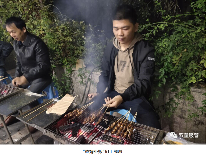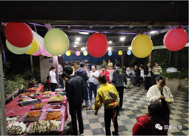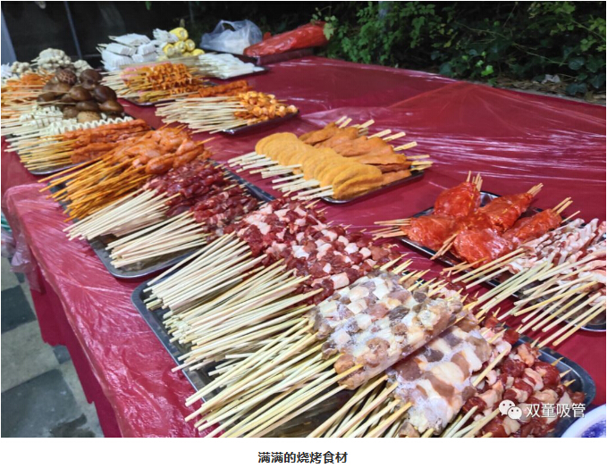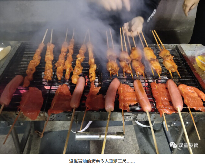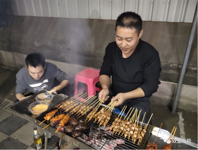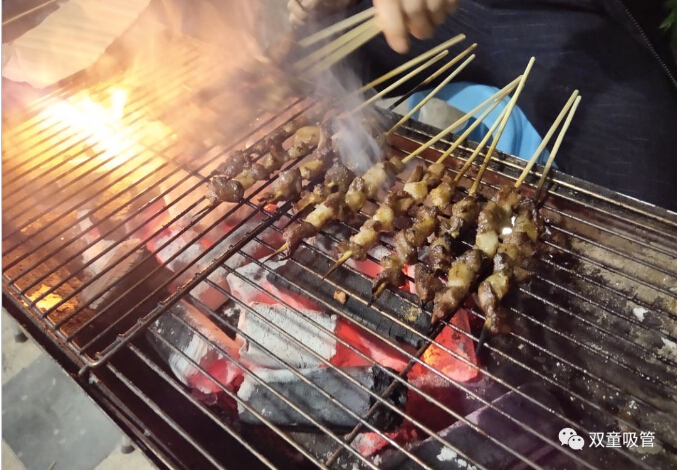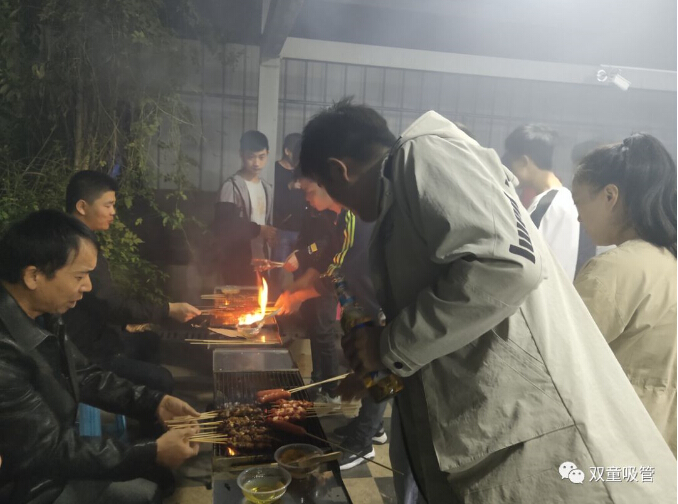大家圍坐在烤爐前爭(zhēng)當(dāng)“燒烤小販”,為壽星們進(jìn)行服務(wù)。大伙手上的肉串還沒吃完,“燒烤小販”們已經(jīng)笑瞇瞇地把新烤好的肉串奉上了,吃都來不及,這是什么節(jié)奏!