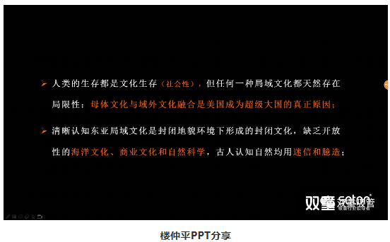 在引入主題前,樓仲平給在座聽眾們打了一個“預(yù)防針”,坦言這個版塊將會給大家?guī)順O大的思想沖擊和認(rèn)知上的震撼,甚至?xí)o大家?guī)聿贿m感,并引發(fā)抵觸。因為這個版塊將會引導(dǎo)大家認(rèn)知“自我批判”!