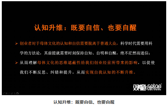 又例如,我們的母體文化隸屬于東亞局域文化,它發(fā)源于中原,是封閉地貌環(huán)境下形成的封閉文化,缺乏開放性的海洋文化、商業(yè)文化和自然科學(xué),古人認(rèn)知自然均用迷信和臆造。雖然母體文化能給我們帶來結(jié)構(gòu)性的支持,也給我們帶來一條狹窄通道下的“自我封閉”。所以,作為中國創(chuàng)業(yè)者,我們要理解和反思在母體文化的局限下給我們思維上帶來的遮蔽和影響,要警惕“自我封閉”,從而看不到宏大世界的真相,陷入到眼見為“真”的假象當(dāng)中。
