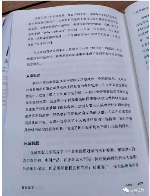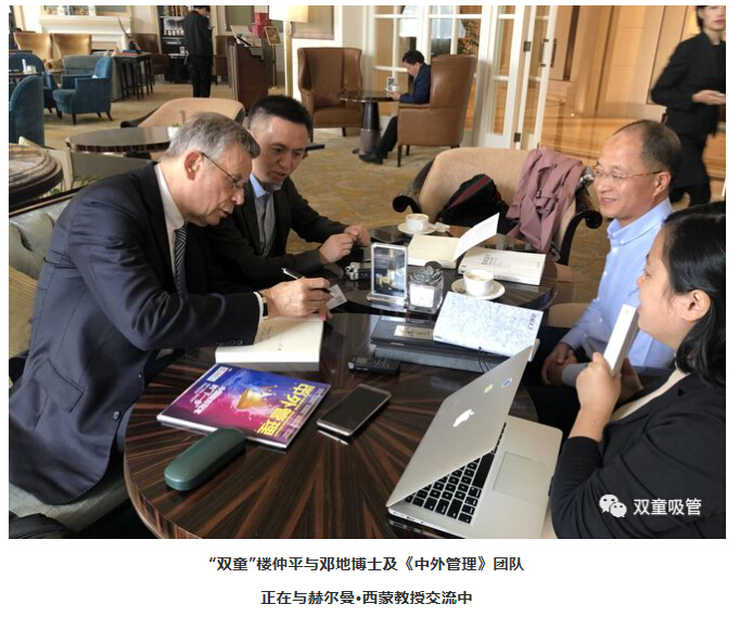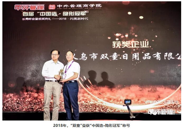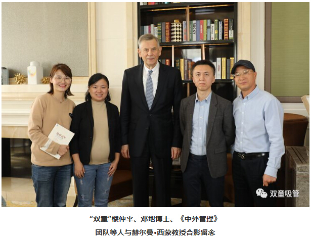 中國(guó)企業(yè)千千萬(wàn),說(shuō)到“隱形冠軍”也有不少,可為何此次《中外管理》雜志特別邀請(qǐng)了樓仲平一同前往采訪西蒙教授呢?原來(lái),早在2018年的首屆“中國(guó)造·隱形冠軍”評(píng)選活動(dòng)中,“雙童”就經(jīng)過(guò)陳春花教授等七位評(píng)委專家的評(píng)選,從24家優(yōu)秀企業(yè)中脫穎而出,被推選為首批“中國(guó)造·隱形冠軍”。除此之外,在西蒙教授最新所著的《隱形冠軍》一書(shū)中,“雙童”也作為隱形冠軍企業(yè)案例被收錄其中!所以,此次的采訪“隱形冠軍之父”西蒙教授之行,“雙童”樓仲平作為中國(guó)隱形冠軍企業(yè)代表參與其中,也是再合適不過(guò)了!