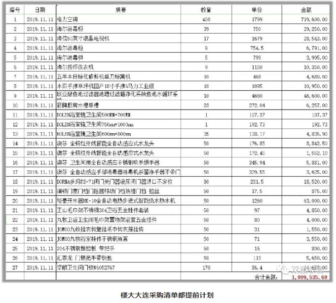 今年雙十一,樓大大聯(lián)合團隊一起買了400臺格力空調(diào)、39臺海爾消毒柜、80臺進(jìn)口閉門器、門鎖170把、9臺投幣洗衣機、17臺各型號彩電、9臺洗衣機..... 為新廠房增添設(shè)備,所有設(shè)備都采用高品質(zhì)的品牌,一百多萬直接貢獻(xiàn)給天貓啦!
